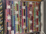Modernly Morgan's Jelly Stars pattern: a precut-friendly design. Specifically crafted for easy creation with jelly rolls, it's ideal for quilters who enjoy working with pre-cut fabrics! Finishes At 64" x 72" - Uses 2 Jelly Rolls